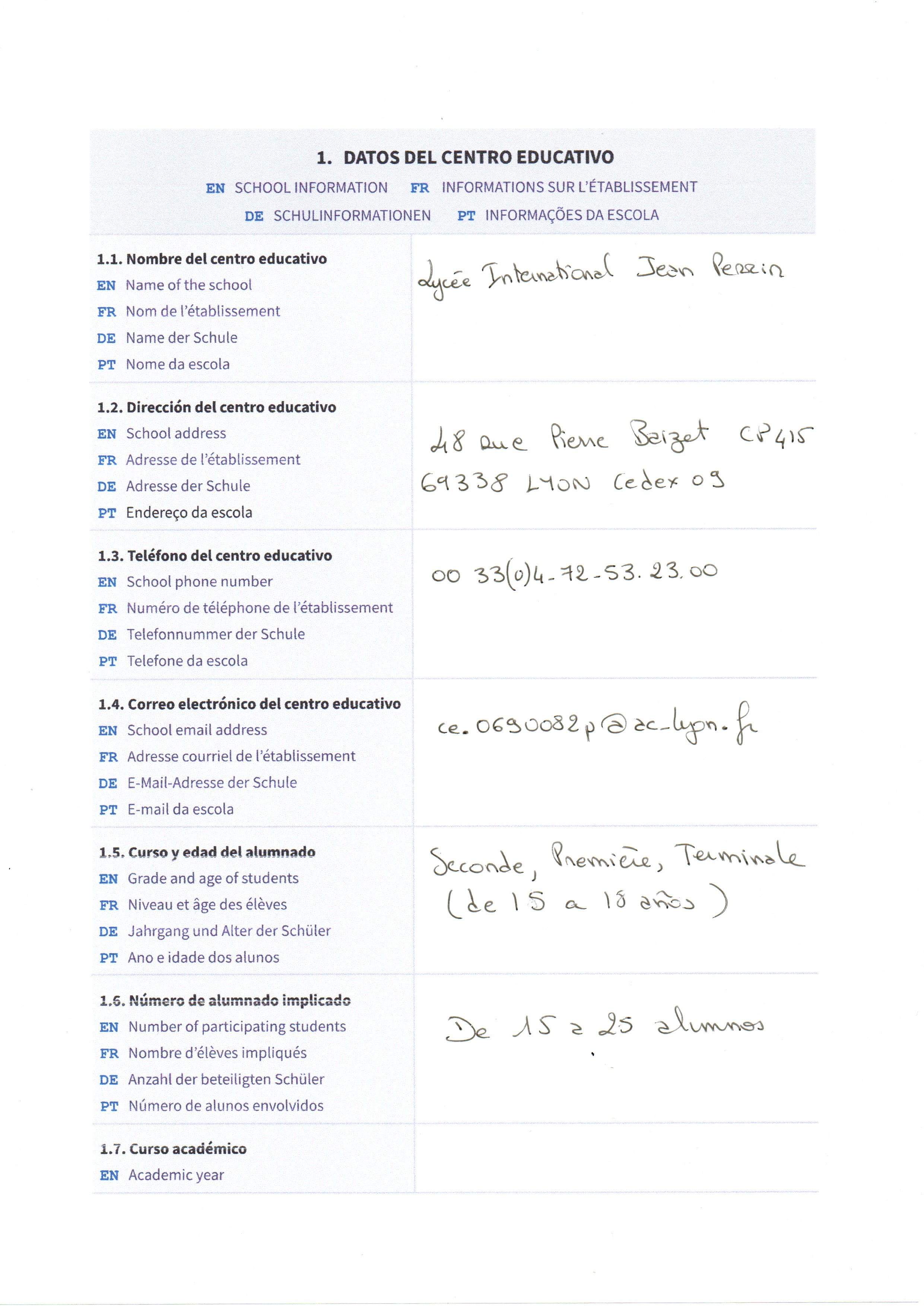 - le dossier de candidature en section binationale allemand (Abibac), espagnol (Bachibac) et italien (Esabac)